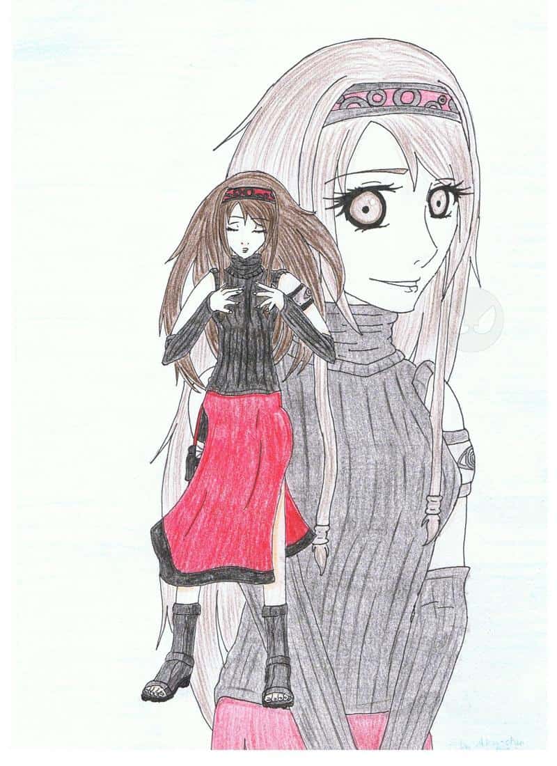 Dies ist die Haupfigur in meiner FF. Natürlich im Naruto-Style. So sieht könnte das ungefähr aus sehen wenn sie singt, also die Figur im Vordergrund.
