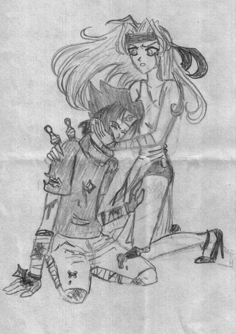 Is mal ein Pic von meiner Freundin. Ich fand es einfach süß. Der Typ ist Sasuke aus dem Manga Naruto (zu lesen in der Banzai!) und das Mädchen ist eine ausgedachte Person aus einer ausgedachten Geschichte.