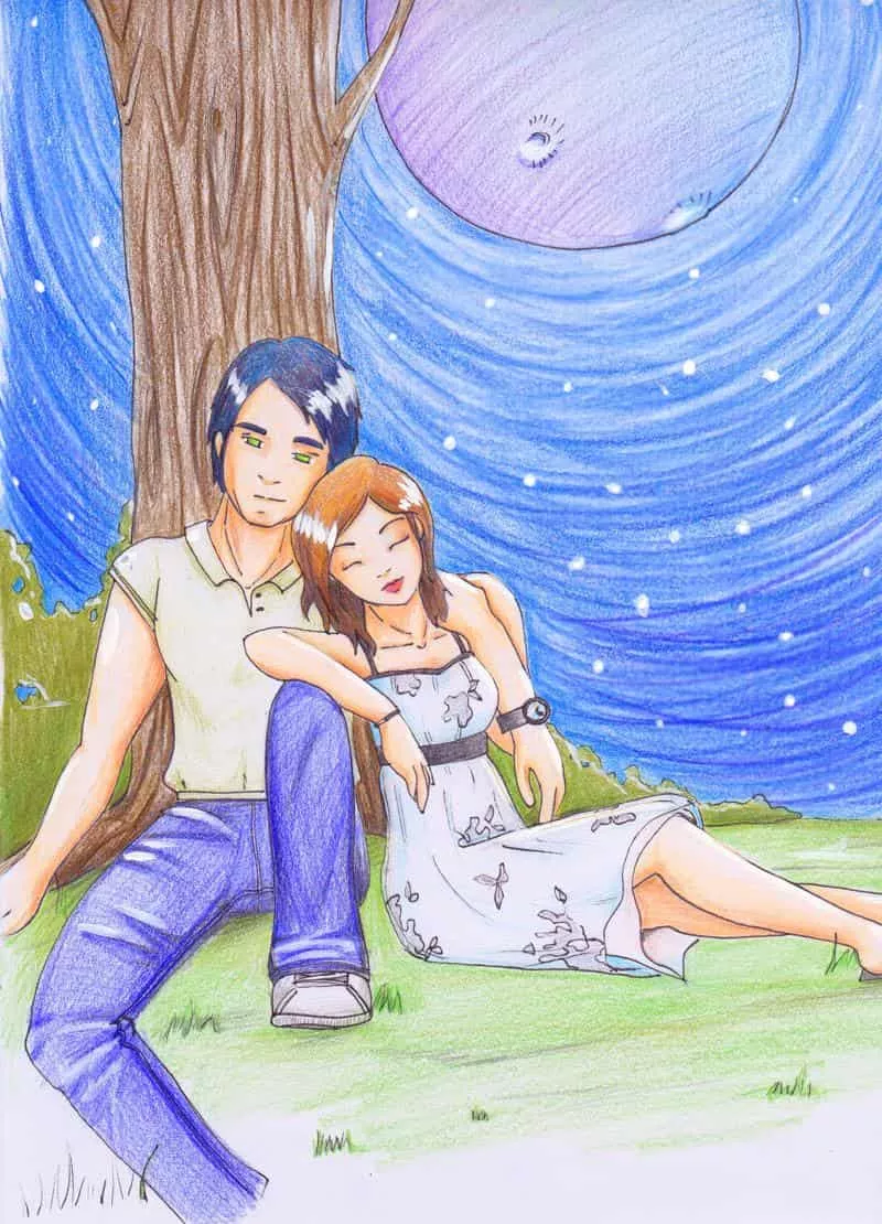 Und weils grad so schön ist noch ein Bild. Ich wollte eigentlich im Hintergrund großflächig gleichmäßig malen, aber irgendwie bekomm ich das mit Buntstiften nicht hin (gefällt mir aber jetzt auch besser, son bisschen Struktur ^^).