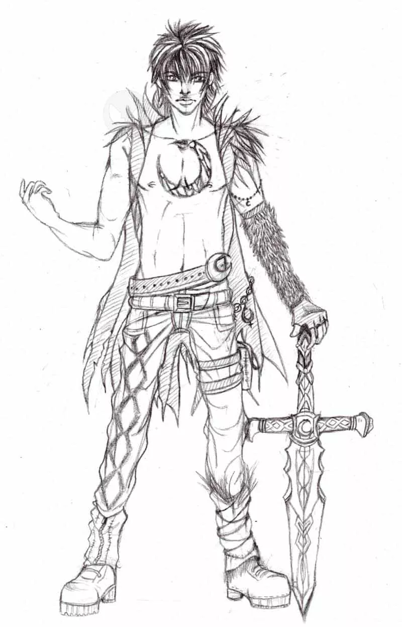 Hihi, ich mochte den Kerl von Anfang an recht gerne(guuut, er is bissl eigensinnig/mürrisch, sagt, was er denkt und hat eig nur die Funktion, den Protagonisten auf die richtigen Bahnen zu schubsen, aber trotzdem, ich find ihn cool *__*) und hab dann einfach ma ne Skizze von ihm gemacht, allerdings mit veränderten Klamotten(warum? Weil ich kein Bild von ihm hatte und zu faul zum Suchen war xD)