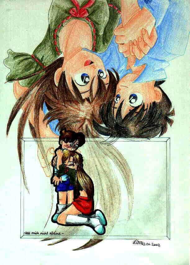 Es soll darstellen, dass Ran Conan nicht auch noch verlieren möchte, da ja Shinichi schon verschwunden ist. Ja mehr eigentlich nicht.