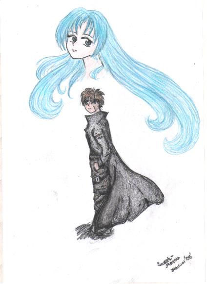 ich weis nicht genau warum ich das bild gemalt hab aber ich weiss noch dass ich damals im MATRIX fieber gewesen bin deshalb ist der Typ unten warscheinlich auch so schwarg angezogen
