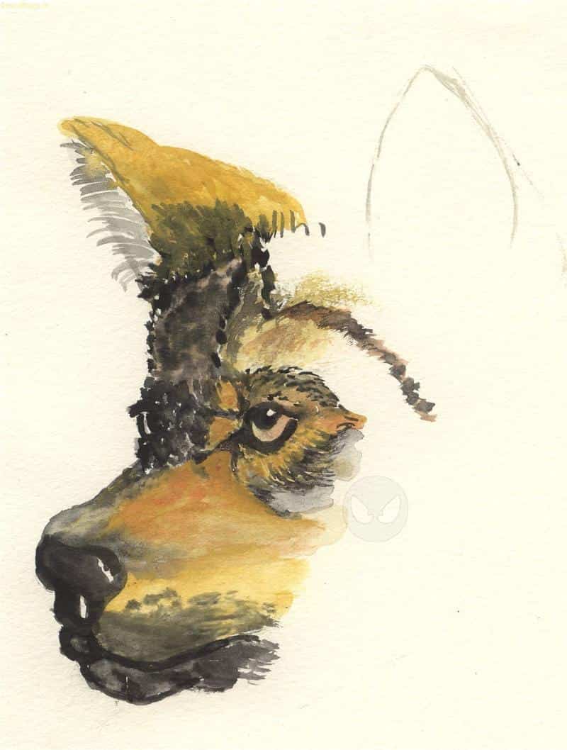 Mein schönster Ausflug in die Aquarellzeichnung, leider hab ich es nie fertig gestellt. *schnief* Ich trau mich einfach nicht mehr ran *g*(von einem Foto abgezeichnet)