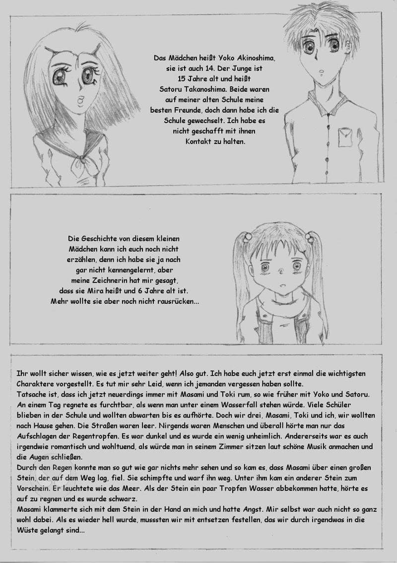 Jupp! Meine dritte Seite. Ihr müsstet, um den Text zu lesen, das Bild wieder gößer machen. Diesmal sind es ja leider nur drei Bildchen, aber ich habe halt diese Angewohnheit erst einmal in die Geschichte einzuleiten, ist das Schlimm? Naja, egal! Kommies sind natürlich sehr erwünscht. Morgen oder übermorgen gibt es dann auch schon die 4. Seite! Bis dann