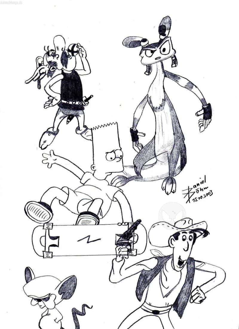 von links oben nach rechts unten: Asterix, Daxter, Bart, Brain, Lucky Lucke
