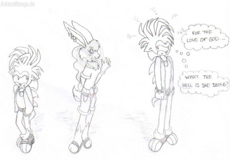 Habt ihr überhaupt mal bemerkt, wie Manic Mädchen beachtet? In zwei Episoden habe ich gesehen, Das er immer so verträumte augen hatt;), So wie in pic diesem gezeigt wird. Es gibt Manic so ein schüchternes Wesen, da das hübsche Kaninchenmädchen (Sie heist Dessireê) ihn unschuldig anlächelt. Mase andererseits, schaut nicht zu glücklich. Nun, er ist etwas sauer auf Manic (da er gestört wird). Er versucht sich immerhin eine feundin zu angeln*lol* Außerdem finde ich, das sie zu beiden gut passt.^^ Yeah ich weiß, diese Idee ist nicht gerade die beste;), Aber hey, ich hab sie um 01:00 Uhr Morgens gezeichnet.
