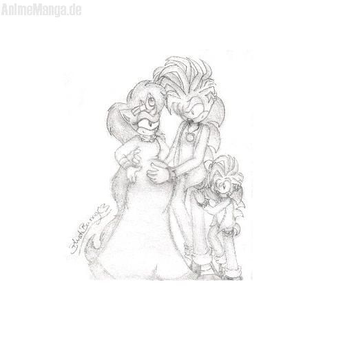 Hehe ^^ So! In diesem Bild habe ich versucht, Manic ihrgentwo zu verstecken ^^ Der kleine da unten is Masevar, wie er sich an seinen Vater schmiegt ^^ Es ist so süß wie klein er ist!! Das Knie seiner Vaters ist höher als er ^^