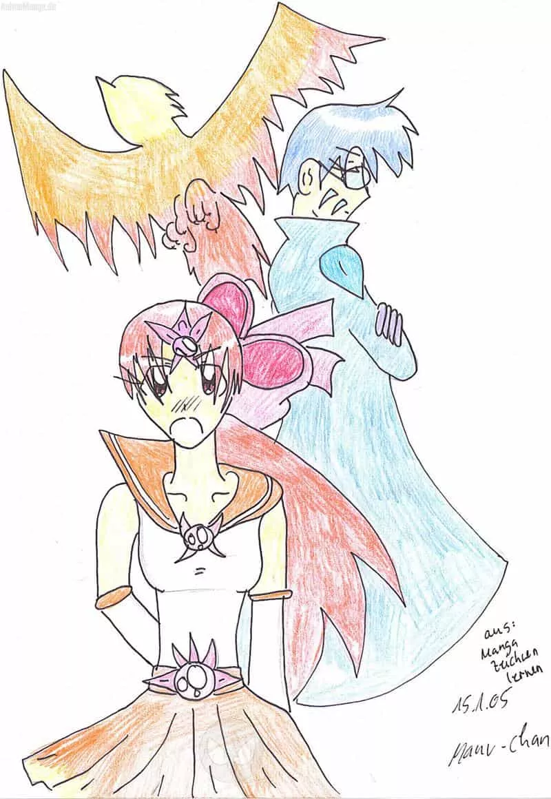 das ist das andere Bild, welches ich aus dem Buch " Manga zeichnen leicht gemacht" abgezeichnet habe....ich finde aber das Gesicht von dem Jungen sieht komisch aus...bitte Kommis, damit ich weiß wie ich mich bessern kann, thx