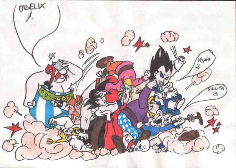 ich bins ma wieder! ok des bild hab ich mal schnell heute in der mittagspause gekritzelt..... deswegen hatte ich keine zeit mehr für die sprechblasen...... aber vielleicht fällt euch ja n guter text ein.... . ok dargestellt is ne gallier-standardkeileri. dabei hab ich noch 3 dbz chars reingekritzelt. ich hoffe man erkennt sie. ich hab auch versucht sie n bissrl dem gallierstil anzupassen. ok genug getextet, jetzt seid ihr dran*g* also über komis würd ich mich ehrlich freuen!!