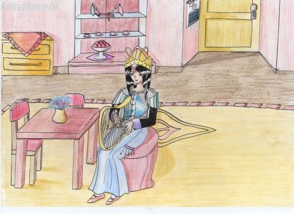 aaaaaaaaaalso der rechte Arm von ihr ausgesehen ist falsch und die Hand sieht da echt komisch aus. Am anfang war die Hand falsch rum Oo ich hätt fast den PC vom Fenster geschmissen mit Esra zusammen XD ich hab des dann weg gekratzt und verbessert. Dann kam die Geschichte mit der Tusche *tusche umbring* angefangen hat es mit der Wand und so. Ich hab teils mit Lineal gearbeitet, aber das meiste war mit der Hand. Ich hab unter das Lineal Taschentuch gelegt, damit die Tusche nicht verschmiert, wenn ich die Tusche wegnehme, doch das Taschentuch hat nur gestört und ich konnt gar nix sehen. Hans dann gelassen und mit bloser Hand gezeichnet. Merkt man auch XD ich hätt dieses Bild fast aufgegeben doch als ichs angemalt habe, war es nicht mehr soooooooooooo schlimm.