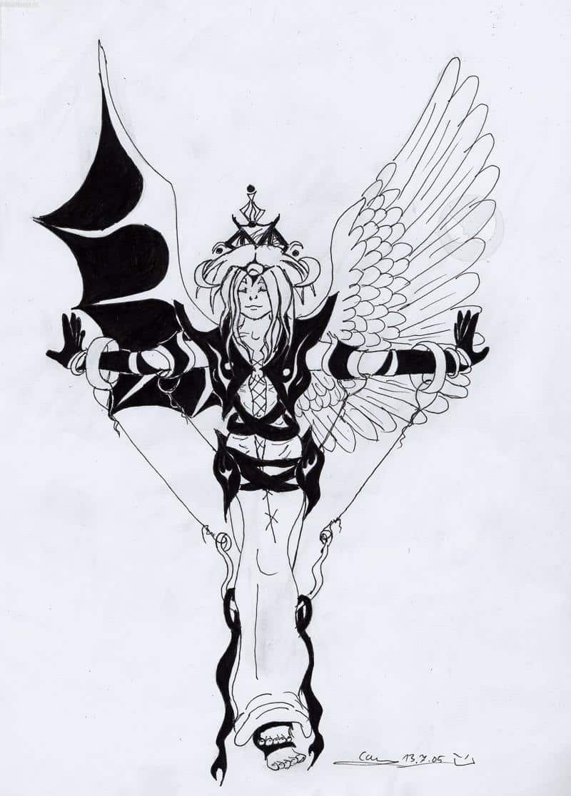 Auch wieder ein Bild, das mir plötzlich eingefallen ist. Ich habe es nur schwarz weiß gemacht weil ich finde so passt es bessa ( außerdem hät ich die colo versaut, ich spüre so etwas ^^. wenn ihr meint ne colo würde schon passen dann dürfts ihr das Bild gerne colorieren ( würde mich sehr darüber freun))