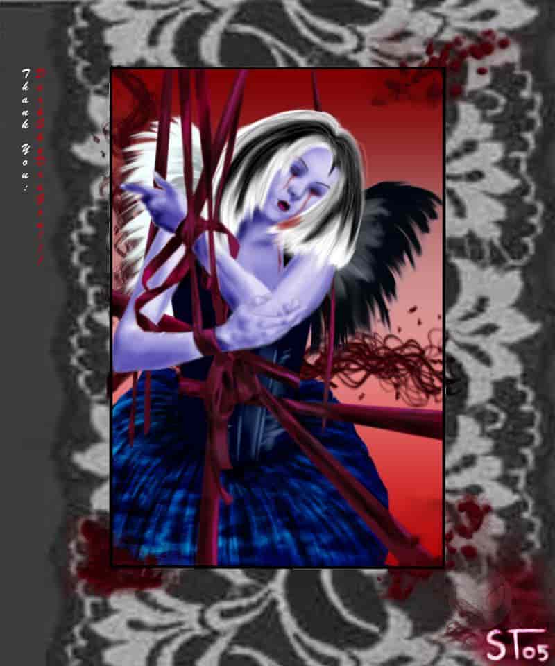 Ich bin wieder gesund! Mein Kreationstief ist überwunden. Nur das Zeichentief schleppt sich noch so hin. Thank You DarkSkyDraGon für die Haare, die Flügel und das Blut. Ist also alles auf ihren Mist gewachsen. Ich hab ja gesagt mein Zeichentief schleppt sich noch so dahin. Tschü