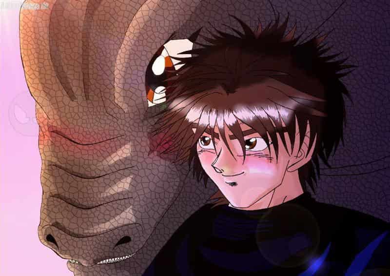 Dragobard gesellt sich zu seinem Menschenfreund Davorhyn. - Menschen, die mit einem Drachen zusammen leben, werden Draco Vagrants genannt.