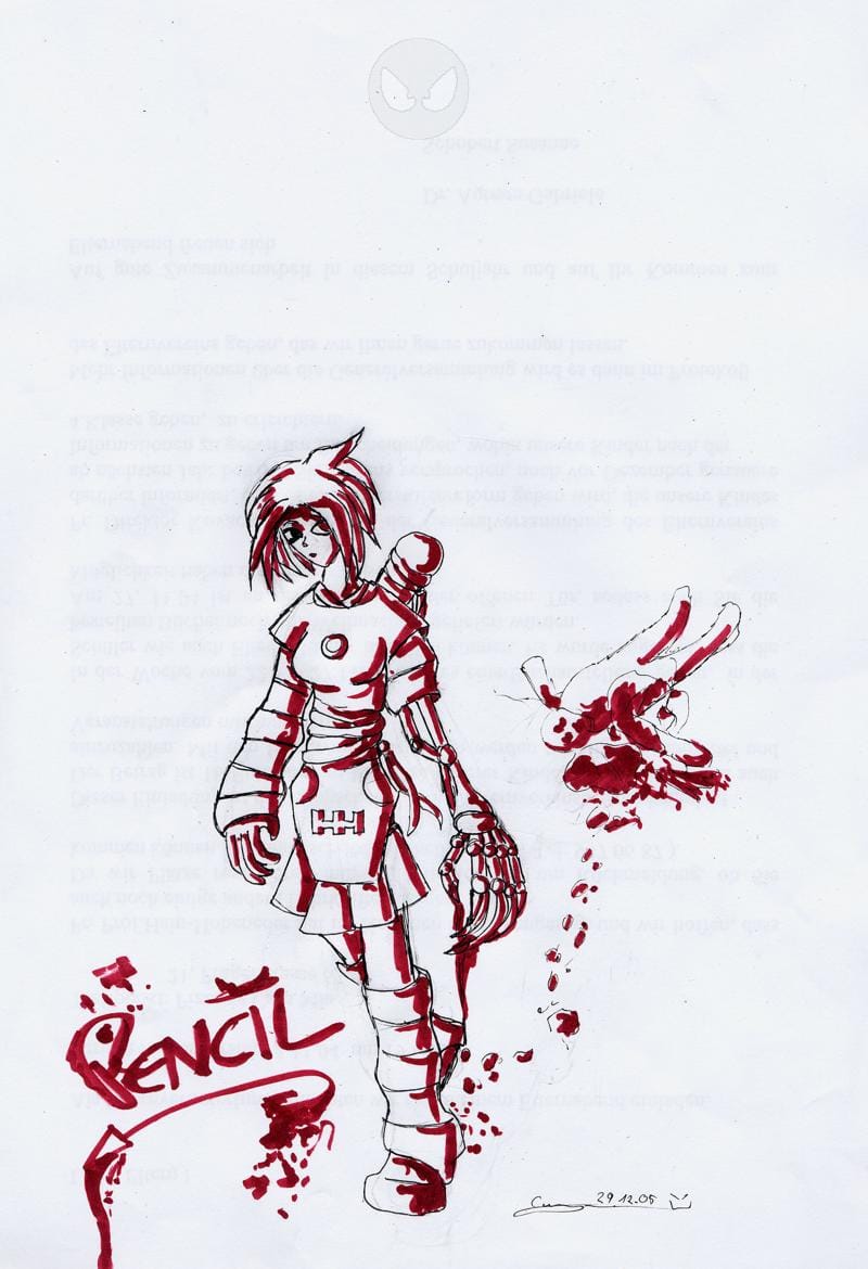 Die Fähigkeit von Pencil besteht darin sich den Arm, den sie gerade am besten gbrauchen kann zu zeichnen. Um diesen wirklichkeit werden zu lassen muss sie ihr geschlossenes Auge öffnen. Dieser Arm kann aber nur ca. eine Stunde anhalten.