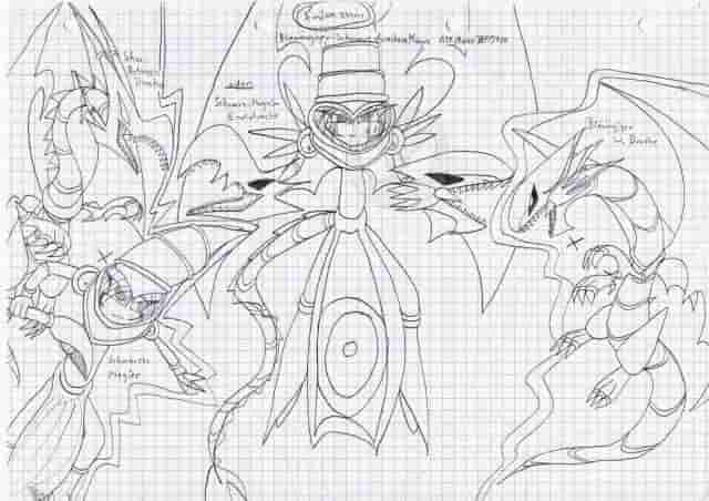 des ist mal ne skizze zur fusion von schwarzer magier, schwarzer rotaugendrache und weißer drache mit eiskalten blick^^