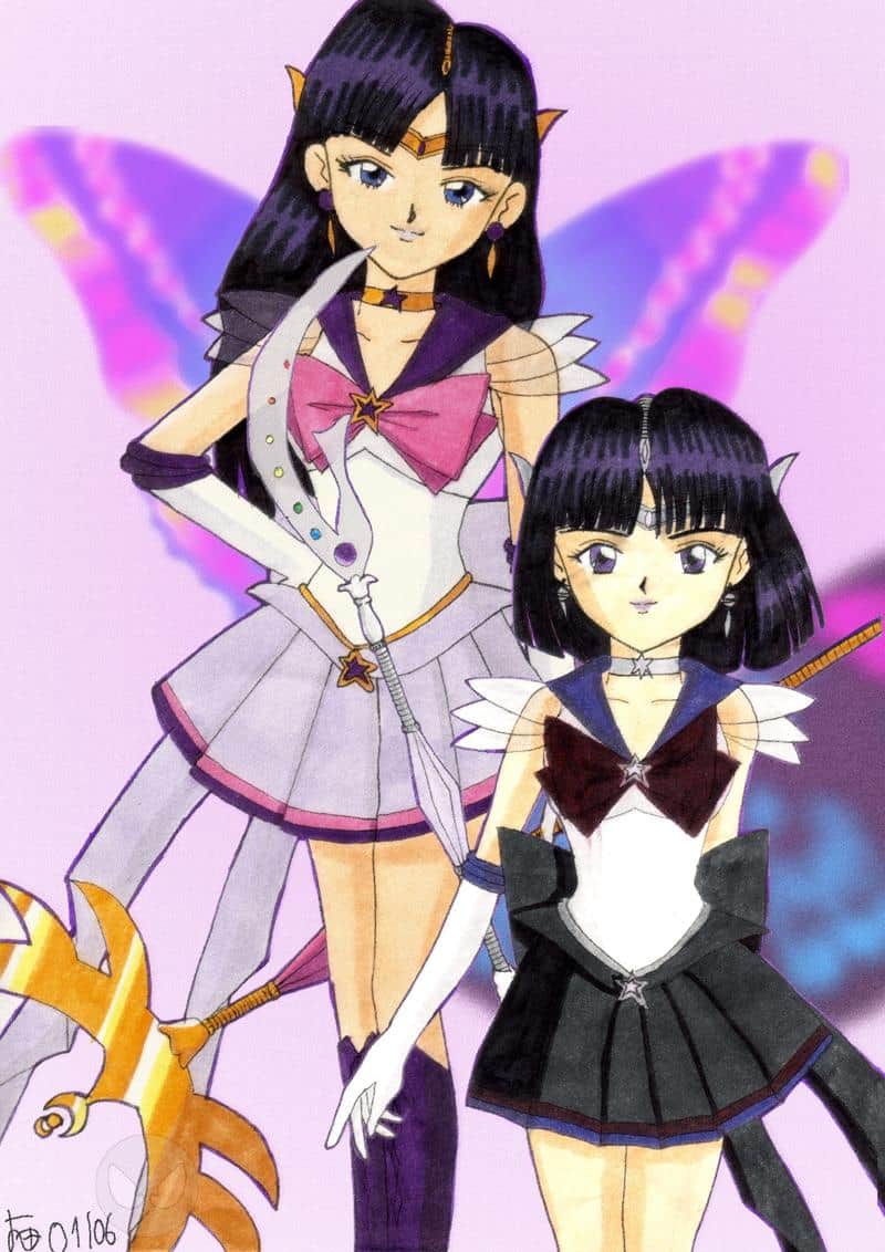 Gezeigt werden Sailor Charon, Senshi der Schöpfung und Unsterblichkeit und Sailor Saturn (man erkennt sie hoffentlich), Senshi der Zerstörung und des Todes in ihrer ultimativen Form, die sie nach der Neuerschaffung des Heiligen Grals erhalten...