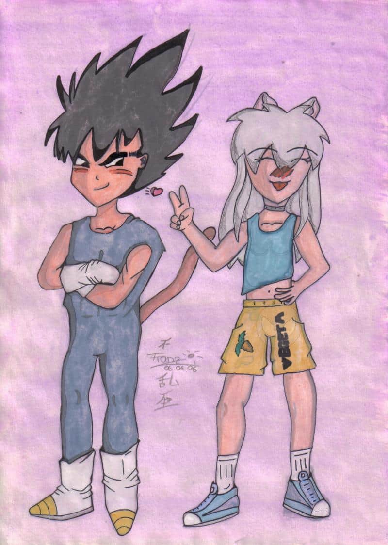 Tjo, hier kommt mein zweiter Versuch mit Aquarell zu malen... Ich finde, er sieht zwar besser aus, als der erste Versuch, aber im Wesentlichen ist er fast genauso... Ich kann den Schatten nicht, wie man sieht, ich male überall schatten hin, wo keiner sein soll! Tja, eigentlich sollte Inuyashina ein Chibi werden, deswegen hat sie keine Nase *gg* denkt euch einfach, sie wäre rot^^ Was noch... Ah ja, an den Outlines habe ich 30 Minuten gesessen, am ausmalen 4 Stunden oder 5 Stunden, vielleicht auch 6? Keine Ahnung, sitze fast kurz nach der schule dran *auf die Uhr schau* OMD Das sind nochmehr stunden, naja, es hat auf jedenfall lange gedauert... Und nun noch was zum Inhalt des Bildes: Erstmal ist das Vegeta mit 16 Jahren (wers glaubt -.-") und das andere is Inuyashina (ich^^) Tja, und wer mich kennt, der weiß, dass veggi und ich uns immer streiten! Das Bild sagt etwas anderes aus! Es gibt auch momente, da mögen wir uns! Tja^^ Das ist die Freundschaft eines Halbdämonen und eines Saiyajins! Es wird niiiiiiiie Langweilig *aus erfahrung spricht* Nich wahr Veggi? *Vegeta auf die Schulter klopf* *Vegeta: *knurr* Hm.... Kann sein* Thihi^^ Sag ich doch^^ Seid nicht zu streng mit mir! *big kiss* eure Inu