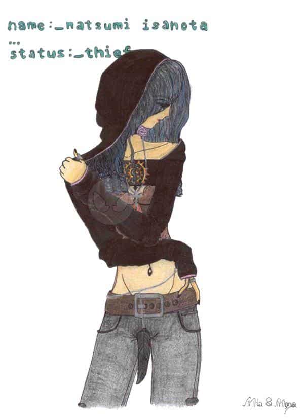 Name: Natsumi Isanota Alter:22 Herkunft: Russland Aussehen: Sie sollte schwarze, lange Haare mit blauen Haarstänen haben und blaue augen. Ihre Klamotten sind meist dunkel und schlicht, wirken aber sexy. Alles weitere bleibt euch überlassen. Charakter: Natsumi ist unnahbar und kalt. Vielleicht sollte ich erwähnen, dass sie zu einer Einbrechergang gehört^^ Obwohl sie in der Gruppe agiert, ist sie eine Einzelgängerin. Sie fühlt sich für niemanden verantwortlich und nimmt auf keinen anderen Rücksicht. _____________ Boah, die is so geil!!! Ich will au so aussehen. (Nya, ´n bissl dünn vielleich ^x^) Nyo ohne Vorlage ging´s leida ma wieda nich: Vorlage is von nem Bild von - (Künstler => forgotten ^^°) Die Schrift sollte wie in nem Computer dargestellt sein (<- scheiß deutsch XD) ma sehen, ob ich noch was mit dem Hintergrund mach ~Mia~