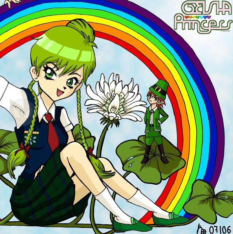 Ringo Nijino und ihr Leprechaun Roy. Ringo verwandelt sich mit ihren Zauberschuhen in Rainbow Hime und kämpft gegen fiese Aliens. Das Ganze gibt es vielleicht bald als Dojinshi^^