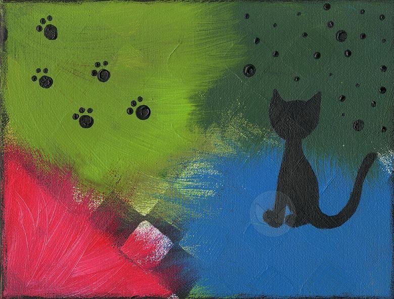 ja ich hab erst so karomuster gemacht (schwarz weiß) und dann die farben drüber ..dann die katze und so und am scluss des rand noch so schwarz .. viel spa0 beim anschauen :P