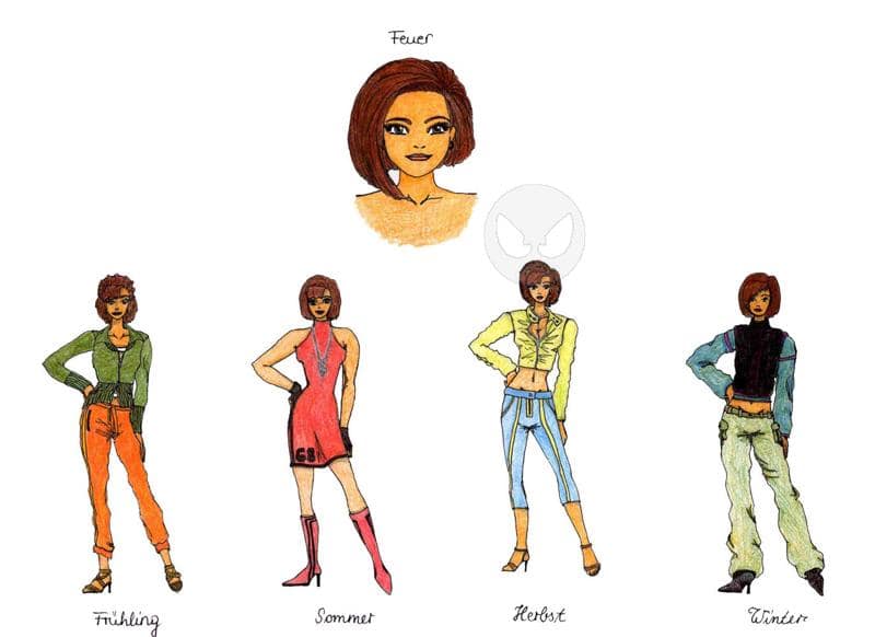 Öhmm ... meine Gedanken zur der Entstehung dieses Bildes: situation - ich blätter meine alten Zeichnungen durch und entdecke die Erde-Mode-Zeichnung und die Vorkritzeleien auf Karopapier die ich beim Wettbewerb ja für alle gemacht hatte, hatte sie aber am Ende nur für Erde ausgearbeitet, weil der Einsendschluss sowieso vorbei war ... nya auf jeden Fall ich hatte zwar gesagt, dass ich die restlichen "Charaktere" noch malen will, irgendwie isses aber dann im sand verlaufen und plötzlich dacht ich: darauf hättste jetz ma wieder Lust, jetz malste ma so´n "Chara"