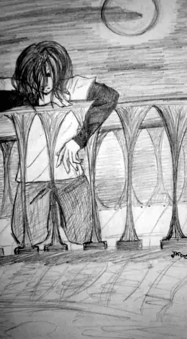Eines der melancholischen Bilder ,,, habt ihr bemerkt, dass er kein Spiegelbild hat? .. ach ja *verbeug* und bitte hackt nicht zu sehr auf der Persprektive des Geländers rum .. ich WEIß dass die Perspektive schlecht ist ^^" aber das Papier ist an den Stellen schon so dünn, dass ich es jetzt nicht mehr ändern kann ^^"