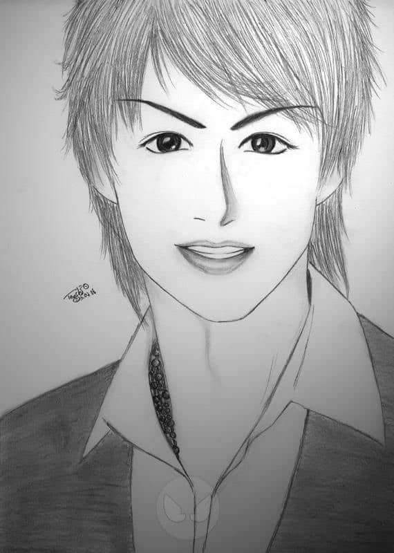 Maru war sehr schwer zu zeichnen. Ich weiß noch wie ich mich nach jedem gelungenen STRICH gefreut habe. Inzwischen habe ich schon ein zweites Bild von Maru. Was mir selber an dem Bild nicht gefällt ist, das seine Augenbraun zu sehr betont sind! Eigentlich sind sie bei Maru net so intensiv. Ansonsten kann ich mich nicht beklagen… Nya, außer das ich mir bei der Kleidung keine (große) Mühe gegeben habe. Ich weiß nicht aber bevor ich DBSK gezeichnet habe, habe ich an der Kleidung kein Interesse gehabt und Maru war das zweite Bild das ich gezeichnet habe! Das sieht man, ne!?? Am meisten bin ich auf die Augen und den Mund stolz, aber auch auf die Nase. Bei Maru weiß man echt nicht wie man sie zeichnen soll, damit sie so rüber kommt wie sie ist! Wie findet ihr sie???? -.-° Maru hat einen sehr langen Hals, das mag ich! ^^ Auch Marus lächeln ist schön. Obwohl es sehr schwer war ihn zu zeichnen, hat es mir trotzdem seeeeeeeeeeeehr viel Spaß gebracht. Ich weiß noch das mir mein Rücken sehr weh getan hat nachher, weil ich immer in der gleichen Pose so angestrengt dran saß und ich weiß noch dass das Bild für mich zuerst nicht wirklich schön war. Aber als ich die Reaktion von meinem Erdbeerchen Miyabi gesehen habe, hat es sich geändert, ich mag das bild sehr!!!!! Arigato~! *Kiss*